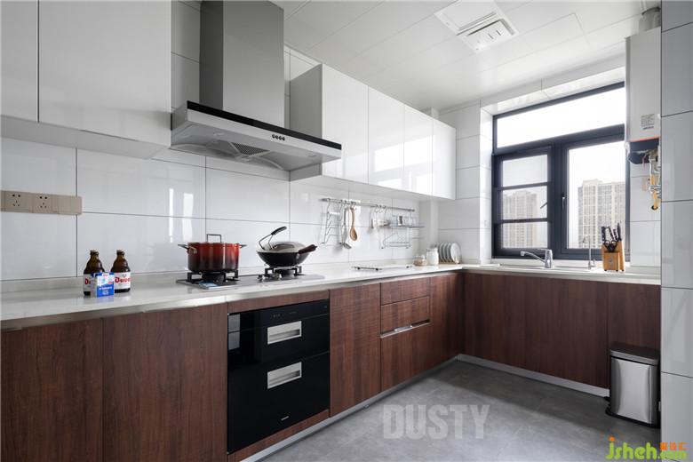 簡潔流暢的線條,現(xiàn)代感十足的設(shè)計(jì),室內(nèi)設(shè)計(jì)師充分利用地柜與吊柜空間,將物品收納到柜子里,空間干凈,讓人心感舒暢。