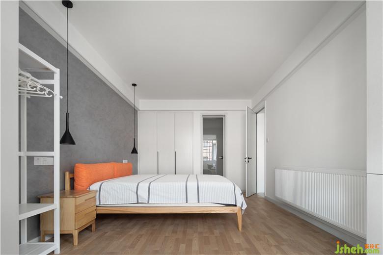 主臥室內(nèi)設(shè)計(jì)師運(yùn)用了淺色的藝術(shù)涂料,讓臥室整體感覺溫馨安靜,床頭兩邊采用了吊線燈,在光線柔和的同時(shí)釋放了床頭柜的空間,更為寬敞舒適。