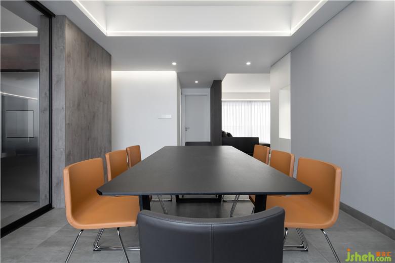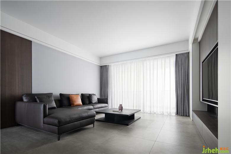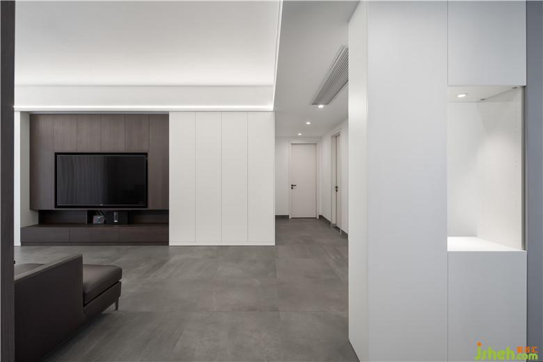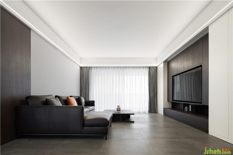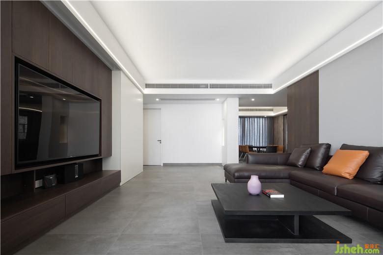 灰地,白墻,胡桃木色元素,為空間的主體,3500k的色溫使家更加明亮。