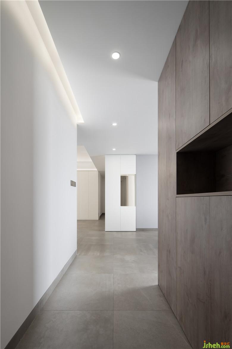 整體摒棄復(fù)雜的造型,注重收納。沒有主燈的客廳,沒有做背景墻造型,除了中央空調(diào)設(shè)備幾乎沒有吊頂??床怀龉褡拥暮圹E,只看到墻。