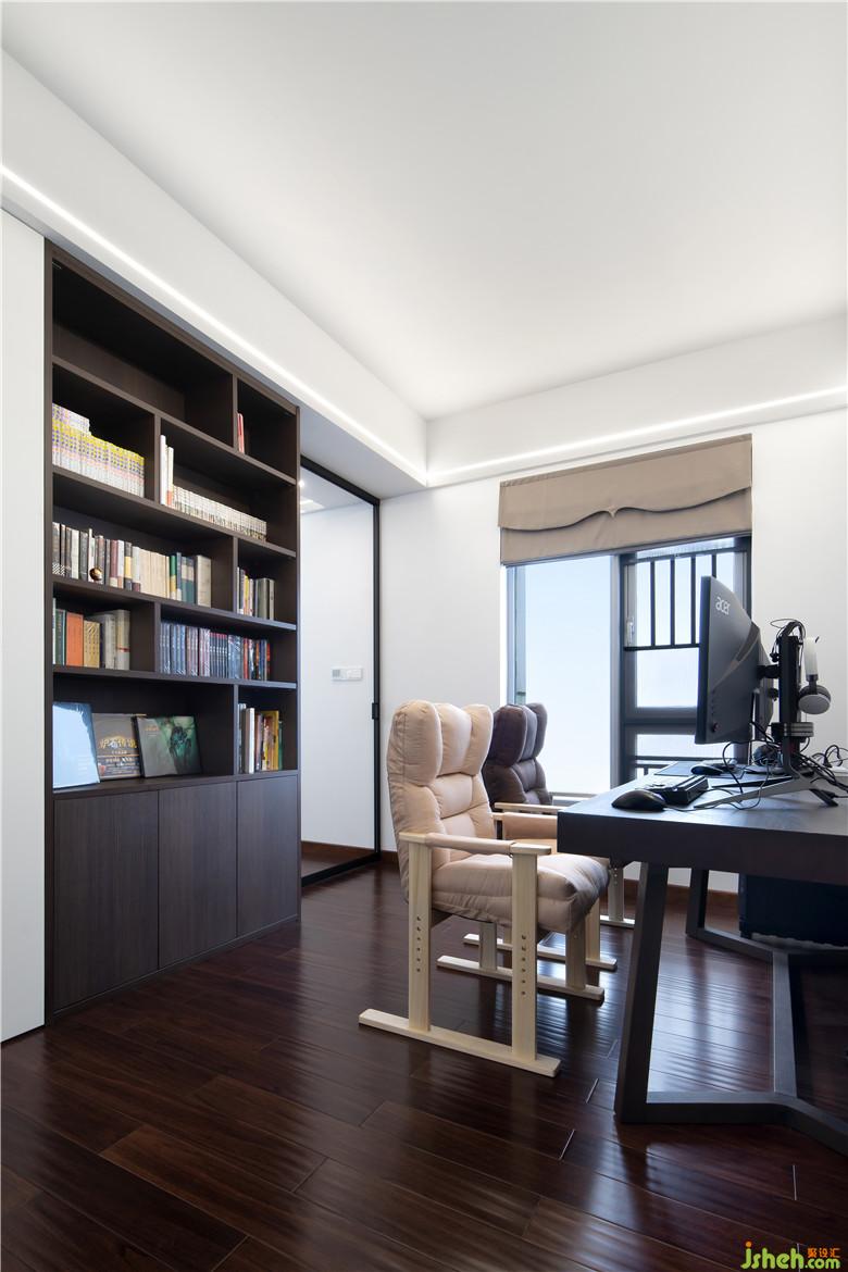 主臥里有一扇奇妙的玻璃門,打開進入書房的世界,關(guān)上又是獨立的兩個空間,互不影響。