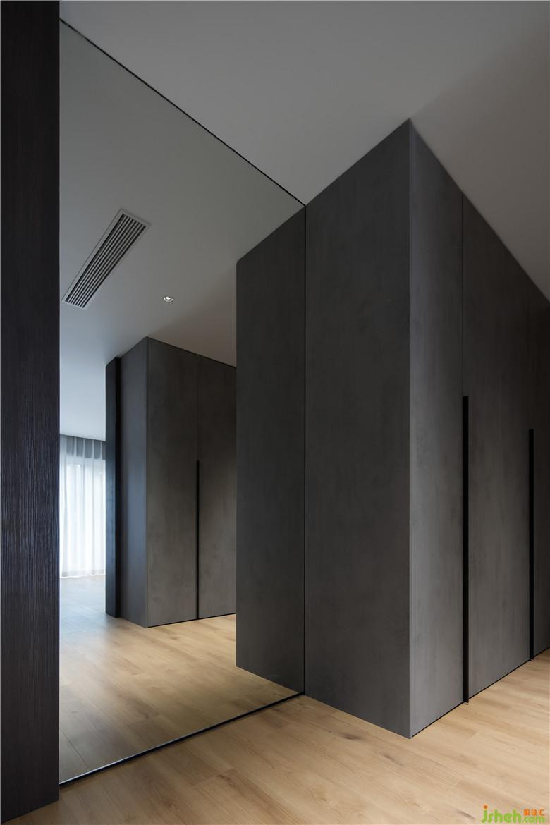 在設(shè)計主臥時,考慮到居住者對空間私密性和通風(fēng)的需求,設(shè)計了一道有趣的門,關(guān)上時,從外面看是一面鏡子,這時整個空間是密閉的,打開時,讓主臥與外面的起居室有了聯(lián)系。