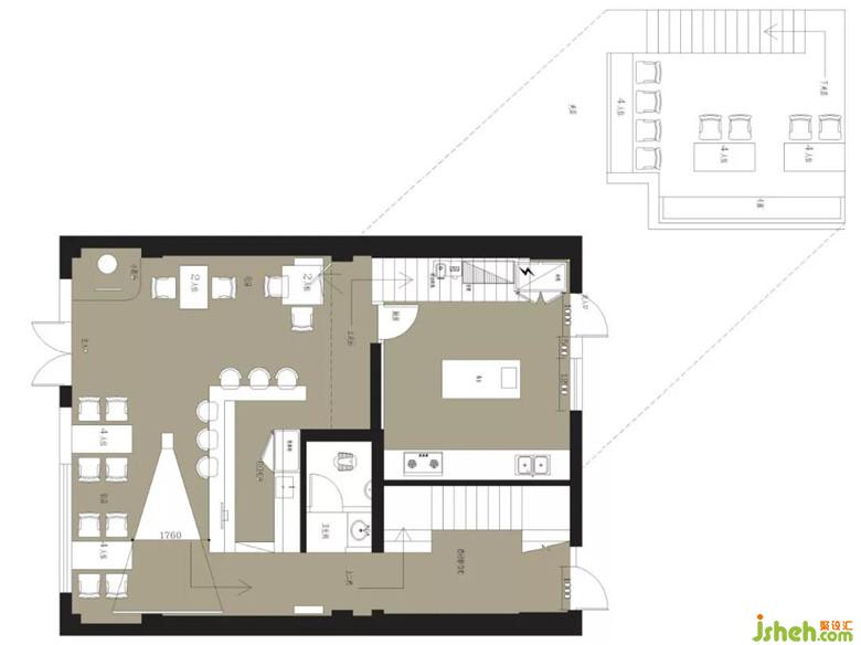 包廂區(qū)域沿用和一樓空間同類型材料,