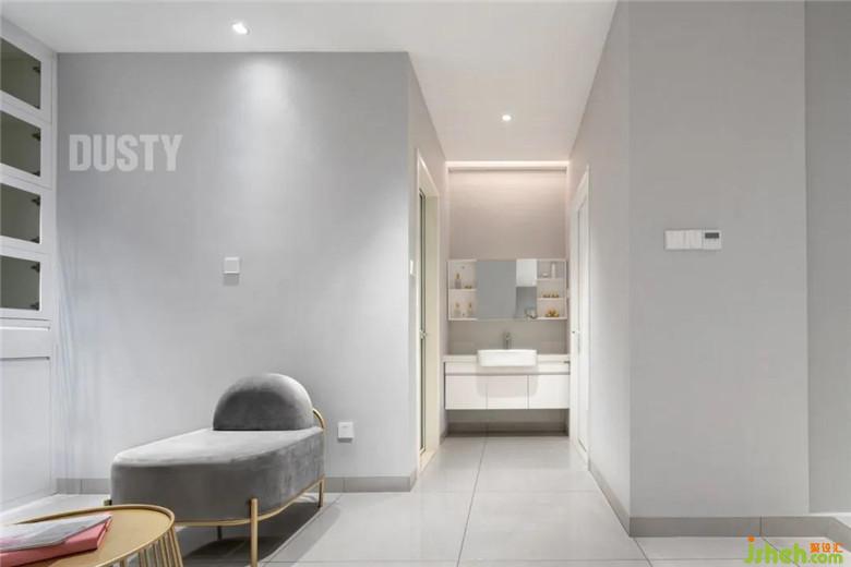 盥洗區(qū)一改傳統(tǒng)的瓷磚鋪貼,
