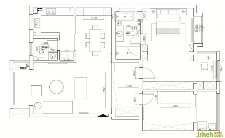廚房與次衛(wèi)洗手間干區(qū)打通,裝修公司改為兩扇大玻璃推拉門,增加了餐廳采光,同時密閉廚房油煙。另外,在餐廳增加西廚高柜,補充中廚收納空間。