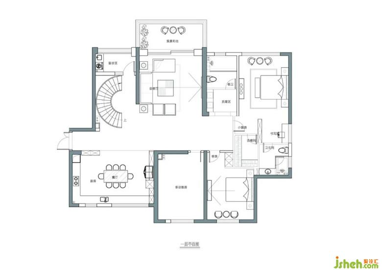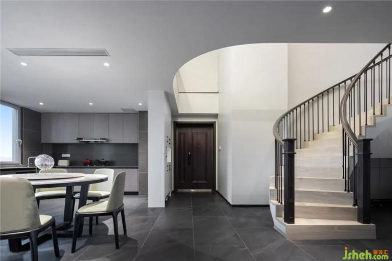 ? 裝修公司設(shè)計(jì)的盤旋而上的樓梯,成為了整個(gè)空間紐帶,隨著腳步一步步有節(jié)奏地邁動(dòng),似有若無間能感受到家的愉悅。