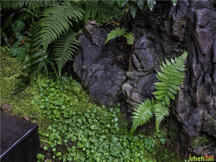 然后在選擇植物上盡量以較少的樹種來打造打造這個園林,配合一些小灌木,還有一些山林中經(jīng)??吹降囊恍┺ь愐约耙恍┑乇恢参?,比如:苔癬、天胡荽、佛甲手、金錢草等等,這些都是運用到桂式園林里面的基本造景元素?;▓@施工一個月,在清明節(jié)前完成,經(jīng)過一個多月的養(yǎng)護,已經(jīng)完全看不出人工的痕跡,最終呈現(xiàn)出來的效果也達(dá)到了我們的預(yù)期。