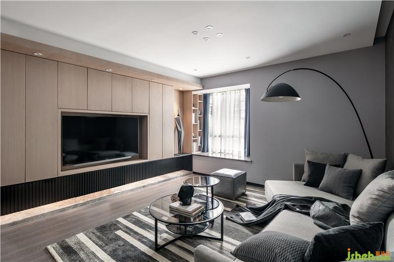 客廳設(shè)計(jì)師用簡潔純粹的設(shè)計(jì)手法,以高級灰沉淀空間的氣質(zhì);溫潤的木色如一股暖流,演繹空間時尚安靜的靈魂。