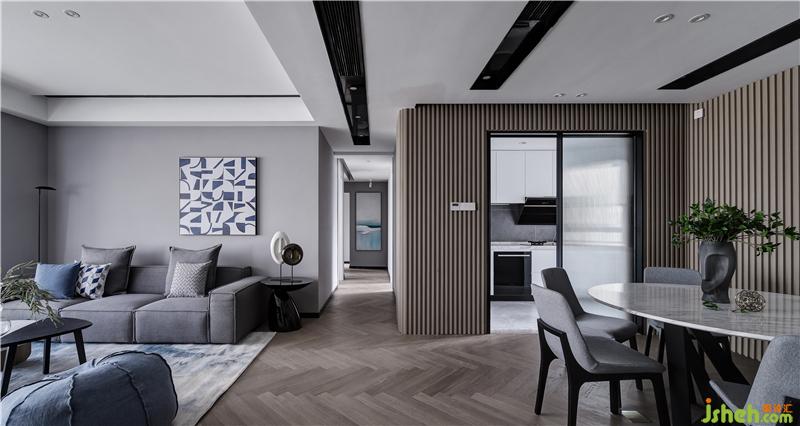從玄關(guān)走進(jìn)客廳,陽(yáng)光和熙,毫無(wú)保留地從窗邊灑落進(jìn)屋子,搭配柔和的色彩,在恬靜中給人以溫馨舒適;而藍(lán)墨色的地毯賦予空間清朗闊然的氣息,更讓心沉著,這是家所獨(dú)有且必然的一種安全感體現(xiàn)。室內(nèi)設(shè)計(jì)師