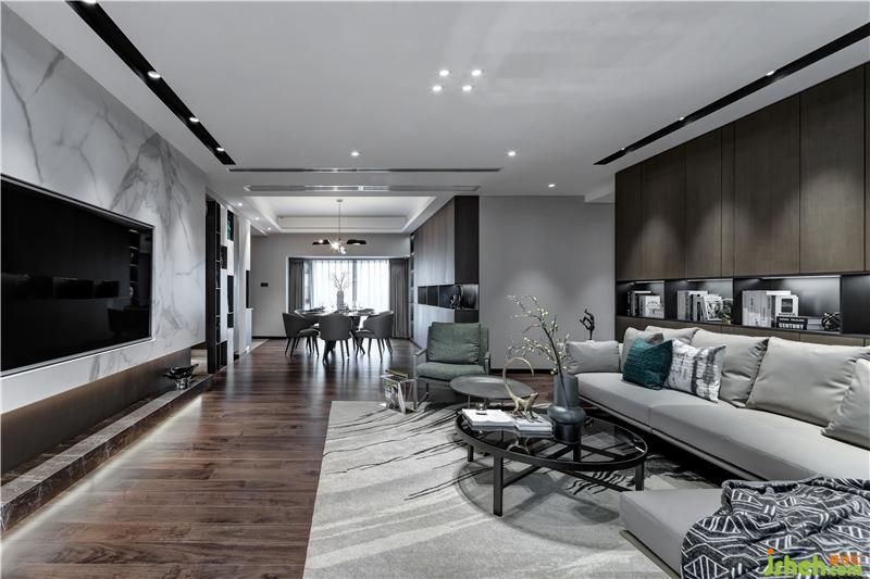 白色大理石水墨的電視墻設計,本身就具有留白的藝術感,借助燈光的暈染,點綴精致的擺件,無需過多闡述,生活的詩意會自然而然順著木紋、盤口傾流而出,洋溢在自由、愜意的生活里。室內設計師
