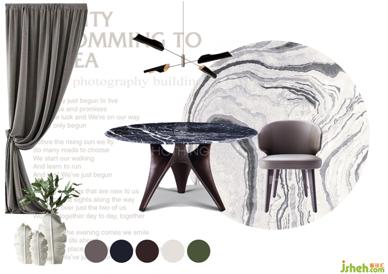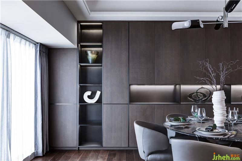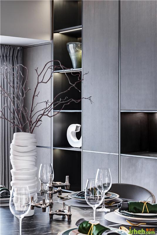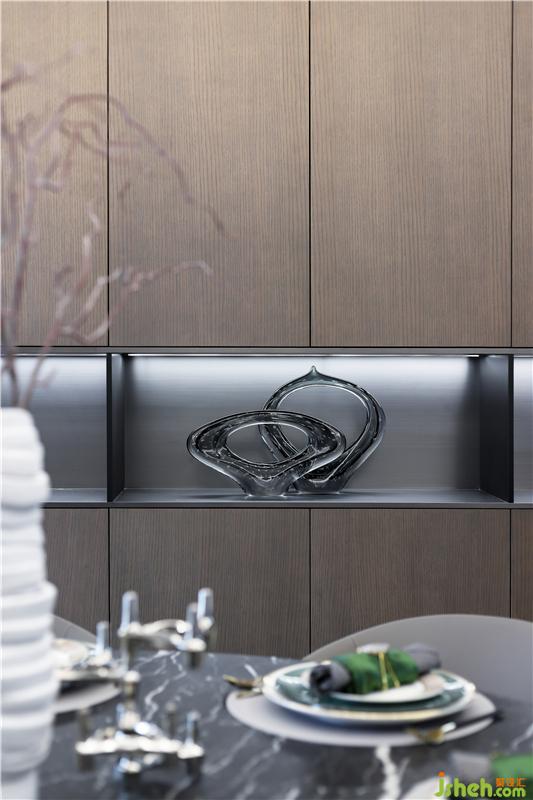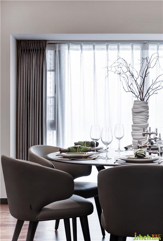 餐廳的花器、餐具、擺件,乃至餐桌座椅,都以流動性的紋理,結合石木材質,在設計主調上,詮釋優(yōu)雅的品質生活。