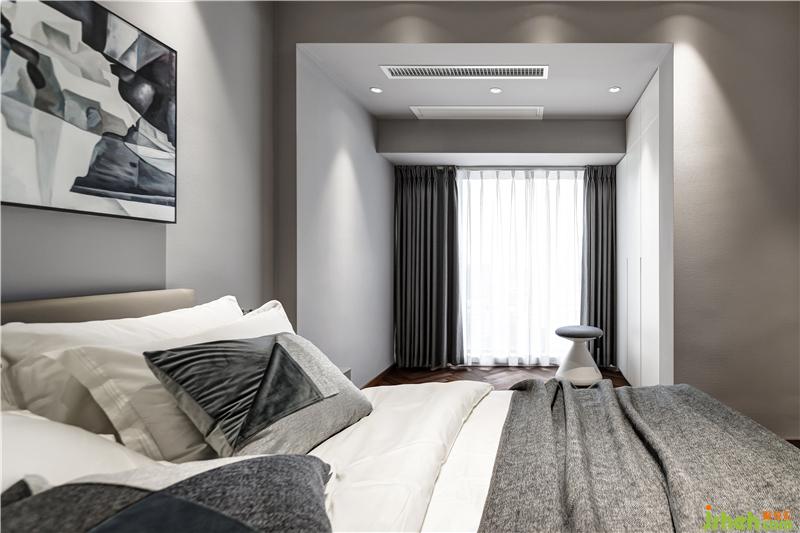 在原始結(jié)構(gòu)中,客臥的實(shí)際面積過小,而且缺少實(shí)用性,因此設(shè)計(jì)將陽(yáng)臺(tái)納入房間,延伸視野格局,并增加了功能性利用。