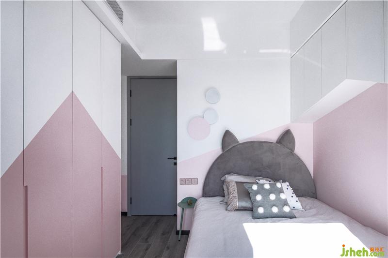 小孩房是輕快靈動(dòng)的,線條紋理、定制柜體、動(dòng)物元素共同組成一個(gè)夢(mèng)幻的公主房,在粉色、白色的包裹下,天真爛漫,在父母應(yīng)給予的呵護(hù)與寵愛下,她也能夠看見窗外不斷變化的世界,與之一起成長(zhǎng)。