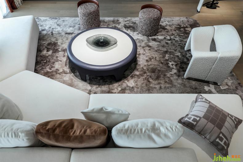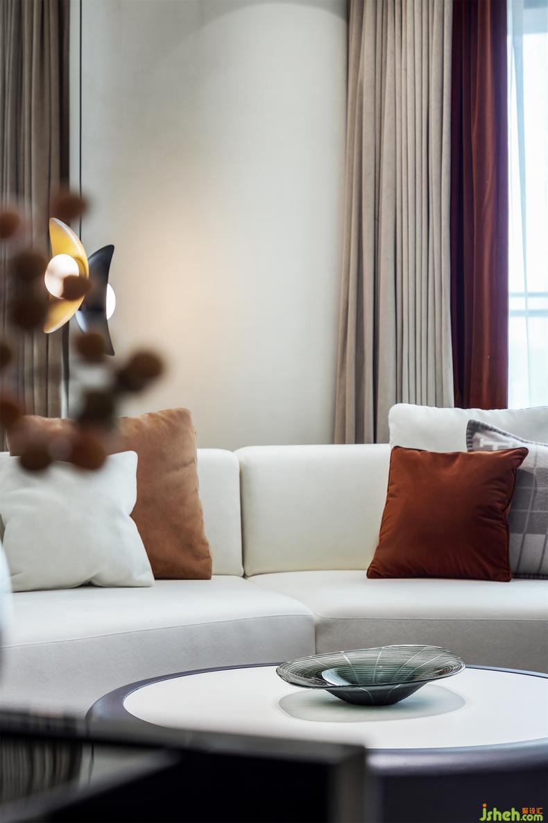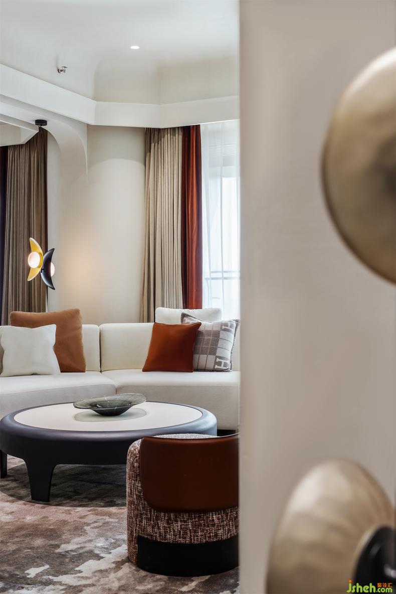 多邊形的沙發(fā)搭配黑色邊幾,點(diǎn)綴愛馬仕抱枕和延伸品牌最經(jīng)典的大橘色系抱枕,深圳家居設(shè)計(jì)舒適的高級(jí)感最為令人著迷,再以圓形茶幾、極具設(shè)計(jì)感的單人沙發(fā)協(xié)調(diào),簡約又給予豐富的享受。