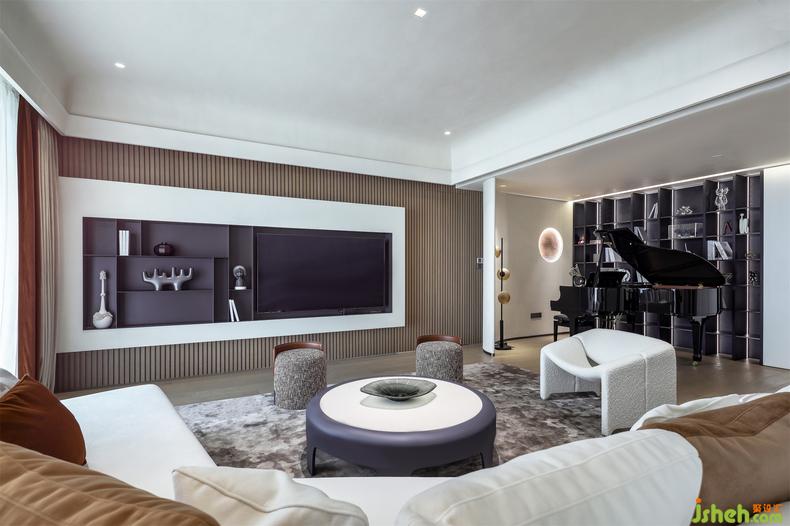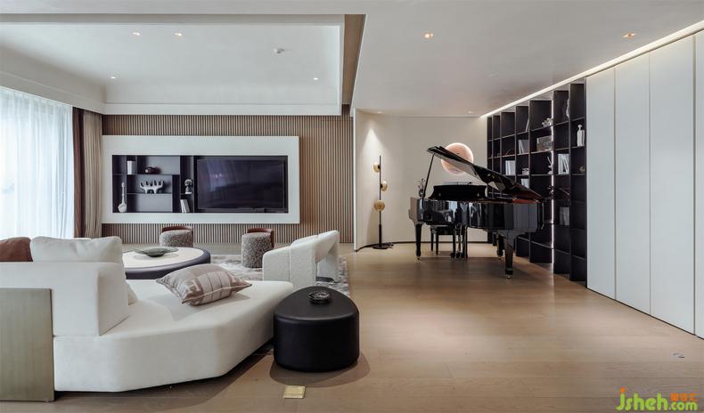 電視背景墻以黑白嵌入,擺滿書籍或者放置一些藝術(shù)品,都盡顯謙遜內(nèi)斂,又對(duì)應(yīng)著鋼琴的優(yōu)雅,充滿了藝術(shù)的趣味。