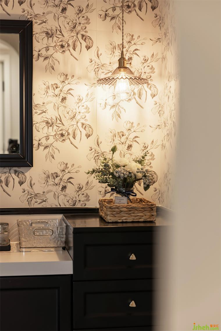 7.衛(wèi)生間依舊實現(xiàn)了干濕分離布局,玻璃磚隔斷劃分出淋浴房,裝修設(shè)計實現(xiàn)功能分區(qū),可以有效避免水汽、潮氣對家電設(shè)備的侵蝕,洗漱區(qū)更是整個房間中心動線的亮點,目光所及,皆是風(fēng)景。