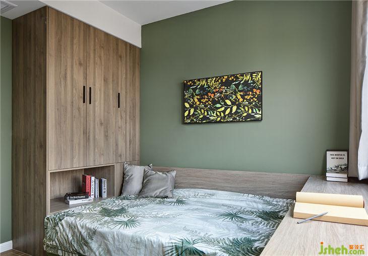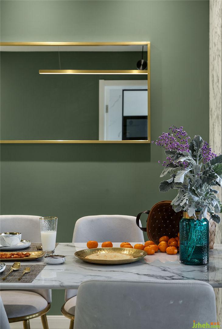 墻面顏色選擇了更接近家鄉(xiāng)的顏色——草原綠,更凸顯了一種森林系的美感,從而把原有“黑白灰”的現(xiàn)代風(fēng)格拓展出了一個(gè)新的層次。