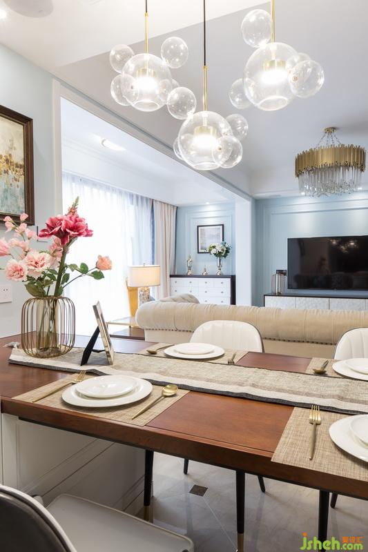 1、將入戶門廳融入餐廳空間,同時(shí)放大客廳、餐廳、門廳三個(gè)空間。