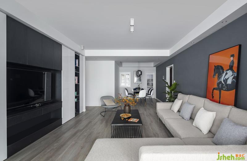 材質(zhì)的選擇上采用石膏板點(diǎn)配點(diǎn)光源貫穿整個(gè)空間塑型,公共空間墻面大面積使用乳膠漆進(jìn)行涂飾,灰色墻面在暖光下墻面顯得格外生動(dòng),猶如絲帶在起舞;其次,臥室空間采用質(zhì)感較強(qiáng)的金屬系列家具裝飾,結(jié)合后期系列軟裝搭配,營(yíng)造一個(gè)溫馨,愜意的休息環(huán)境。
