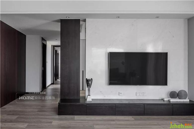 在客廳的布局上,設(shè)計師巧妙的利用電視墻體與書房的局部相結(jié)合,鏤空的設(shè)計,形成一種連續(xù)延伸的軸線,同時也讓整個空間在視覺上更加寬闊。
