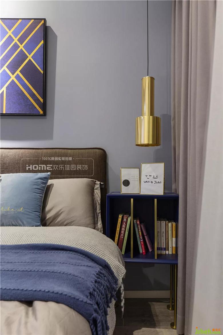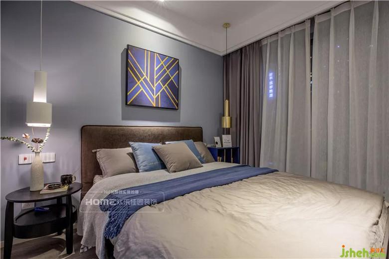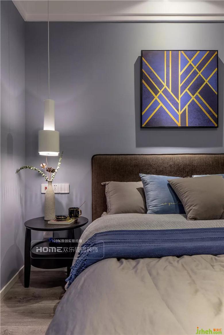主臥是飽滿而富有內涵的,柔和的藍灰色與米白色強化了現(xiàn)代風格的概念,形狀各異的床頭柜、抽象現(xiàn)代掛畫,以刺激或奇異的方式組合在一起,巧妙利用顏色的明暗變化,塑造出沉穩(wěn)、空靈的家居體驗。
