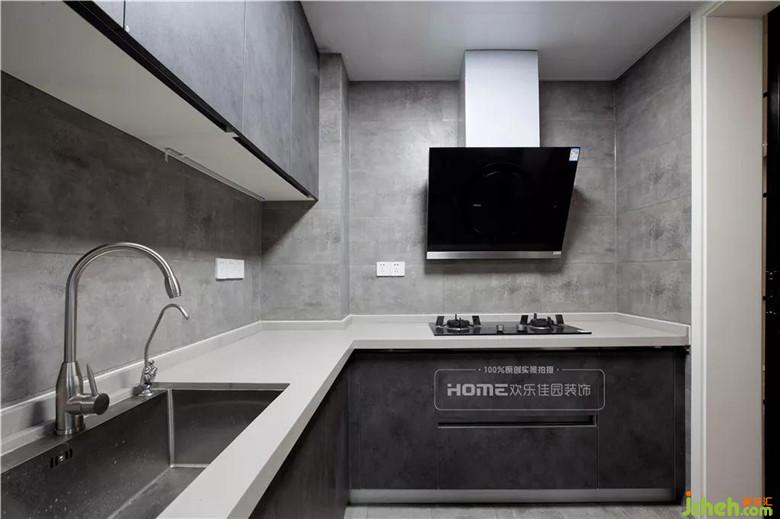 黑灰色的廚房是個時髦的選擇,區(qū)別于常見的花磚鋪設,設計更顯與眾不同,用色簡約統(tǒng)一,視覺感官上更加大氣。