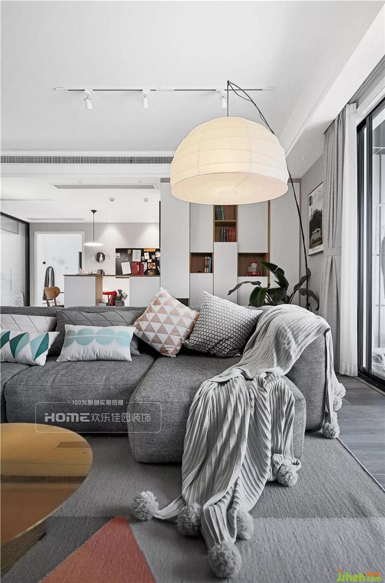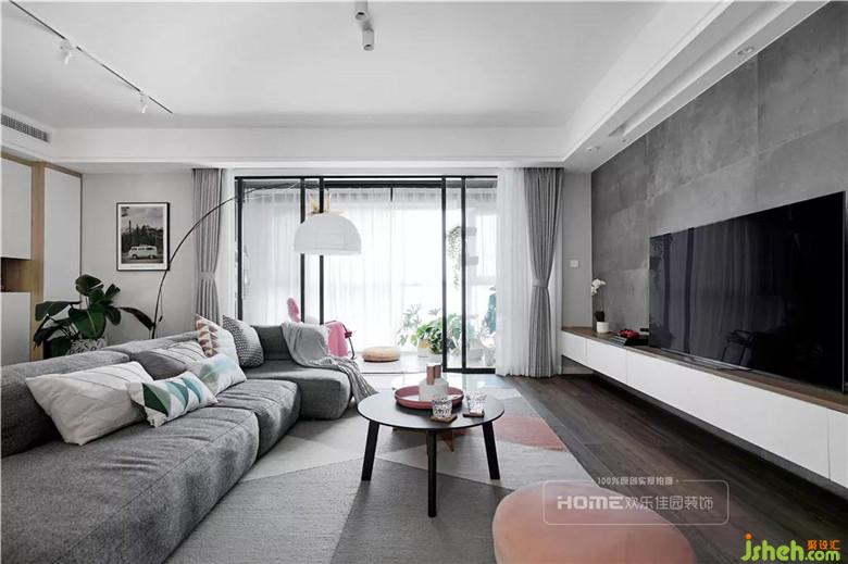 客廳面積大,從材質(zhì)、色彩、照明到軟裝配飾,細(xì)節(jié)處理非??季浚ㄗ龅膽铱针娨暪?,水泥灰電視背景墻,質(zhì)感與實(shí)用并存。遵循空間協(xié)調(diào)、動(dòng)線合理的原則,參照Miss張的生活習(xí)性,一步一景,都傳遞出自然的溫度。