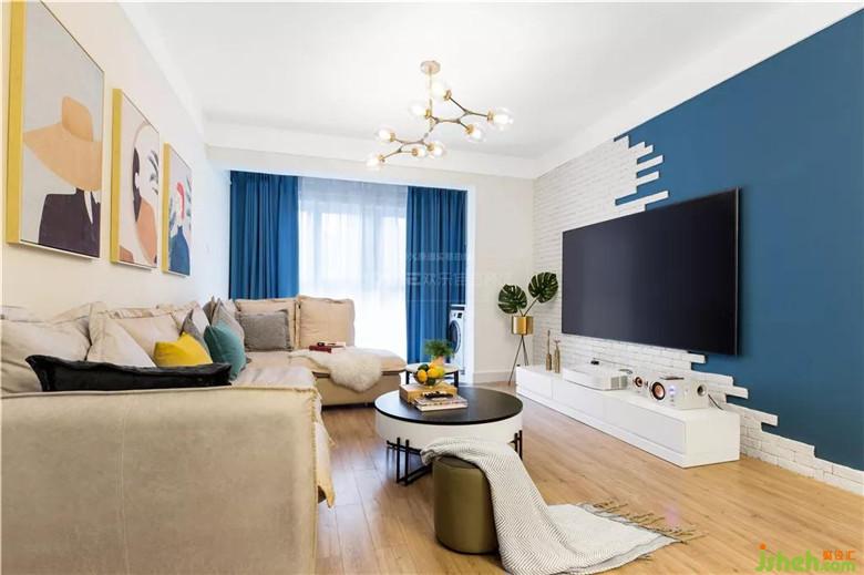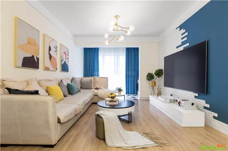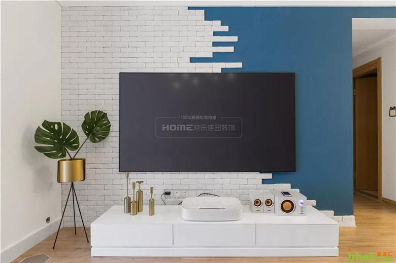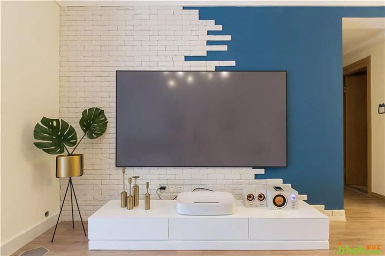 白色文化磚與藍(lán)色墻漆相互映襯,使得空間層次更加分明。因?yàn)榧揖呤菢I(yè)主自購(gòu),在電視柜和激光電視機(jī)的選用上,李先生花了好大一番心思呢。