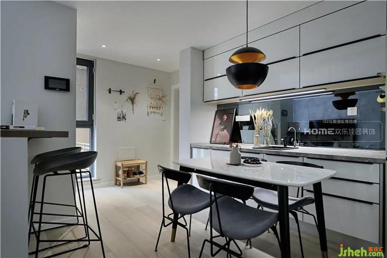 這是一套中小戶型,泡泡喜歡現(xiàn)代偏北歐的混搭風(fēng),設(shè)計(jì)師在公共空間采用開放式格局做規(guī)劃,僅以家具界定客餐廳兩個(gè)不同區(qū)域,化解小坪數(shù)的局促,讓視覺得以延展。