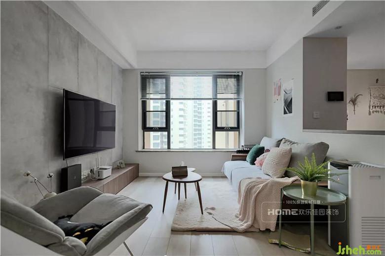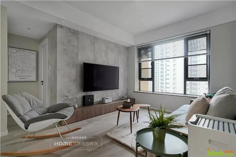 整個(gè)客廳空間以黑白灰定義現(xiàn)代,以原木系的家具界說北歐風(fēng),客廳電視背景墻水泥灰是泡泡的心頭愛,占墻面?的窗戶,自然采光提升室內(nèi)明亮感,襯得室內(nèi)粉與灰,黑與白的精彩碰撞。