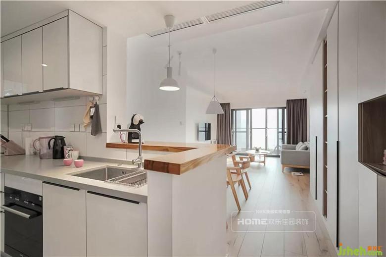 由于生活陽(yáng)臺(tái)較大,設(shè)計(jì)師將廚房部分功能移至陽(yáng)臺(tái),減少?gòu)N房的儲(chǔ)物壓力,同時(shí)將生活陽(yáng)臺(tái)合理有效的利用起來(lái),無(wú)多一分的累贅,也無(wú)少一分的負(fù)擔(dān)。