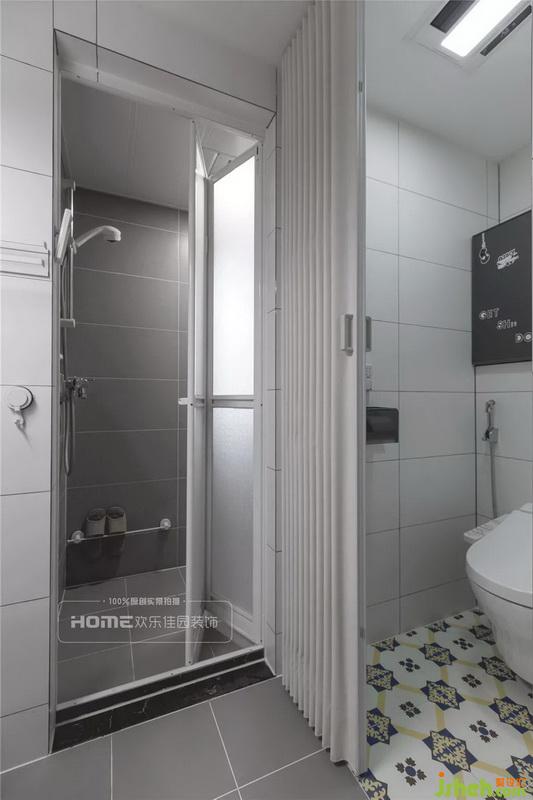 原始一衛(wèi)的戶型不方便一家三口的使用,設(shè)計師在衛(wèi)生間的改造設(shè)計上用盡心思,因需考量,將衛(wèi)生間的面積擴容,向入戶花園擴充,因此實現(xiàn)衛(wèi)生間三分離,如廁、洗漱、淋浴分別在不同的區(qū)域,多人使用互不干擾。