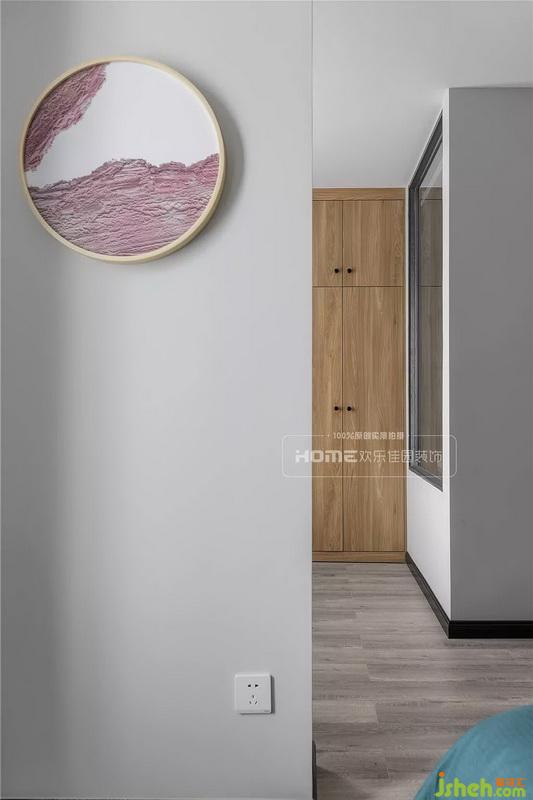臥室鋪貼淺色做舊地板,延續(xù)留白頂面和墻面,原木色的定制衣柜,提升空間機能,簡約的線條勾勒出整個空間的輪廓,整個設(shè)計手法簡單大氣,面與面的高低錯落,拉升空間的立體感。