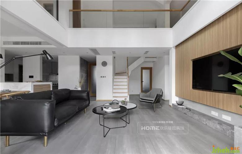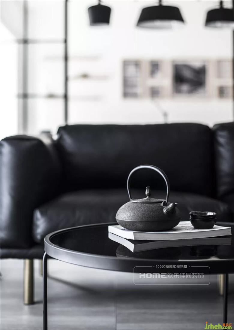 通過(guò)各種材質(zhì)的形態(tài)組合,光與影的交織,肌理與形態(tài)的搭配,演繹了一種無(wú)限延展的自然之美。淺灰色地板與白色乳膠漆搭配大面積木質(zhì)電視背景墻,構(gòu)建一面質(zhì)樸沉穩(wěn)的空間感,黑色皮質(zhì)沙發(fā)與電視遙遙相望,打造一方寧?kù)o安閑的悠悠居所。
