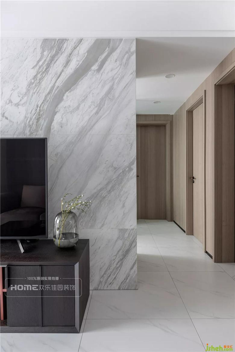餐廳空間大面積木飾面板的運用,能夠起到很好的協(xié)調(diào)作用,同時,木飾面板作為空間的過渡,與電視背景墻的石材兩相對比,巧妙地利用中性的色彩打破僵持的局面,從而更加凸顯空間的質(zhì)感。
