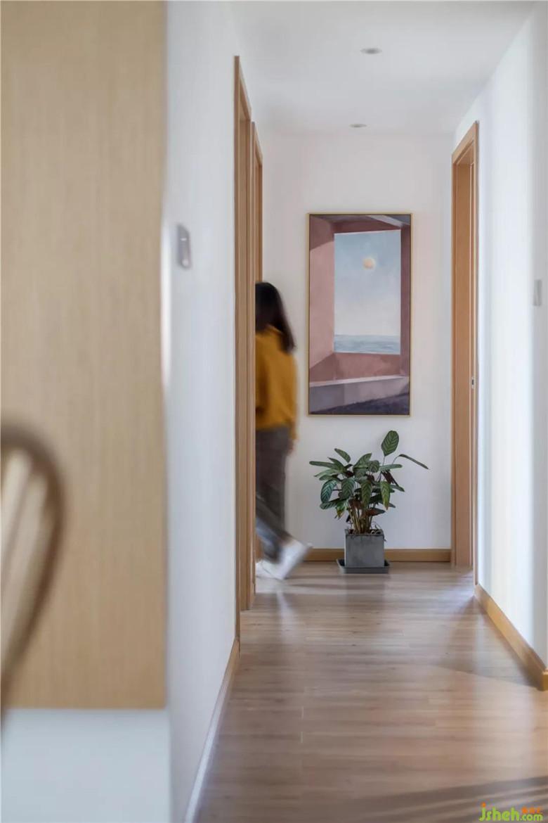 走廊是經(jīng)常出入的地方,兩邊的大白墻是為了凸出盡頭的壁畫(huà),再添置一盆綠植,文藝滿滿,充分利用走廊空間來(lái)設(shè)計(jì),不僅能帶來(lái)視覺(jué)上的吸引力,還滿足小戶型的實(shí)際需求。