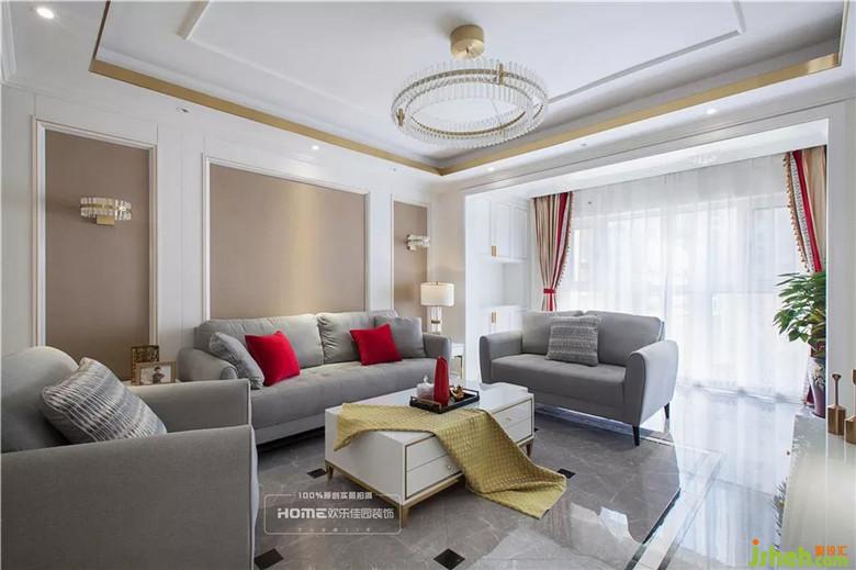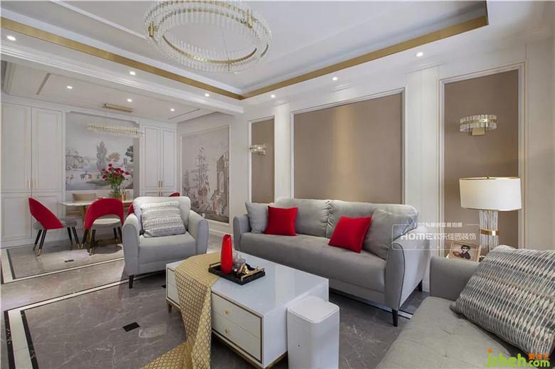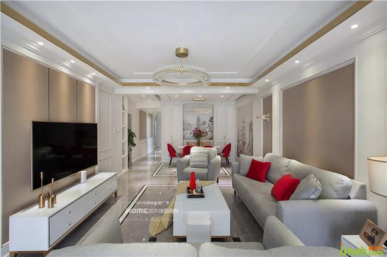 三口之家,女主人獨愛大紅色,男主人喜愛金色,所以整體裝修是以大紅色搭配金色的法式輕奢風格;裝修公司空間并沒有大面積使用紅色和金色,大面的白色凸顯金色的精致時尚,灰色與紅色一冷一暖對比,營造驚艷空間。