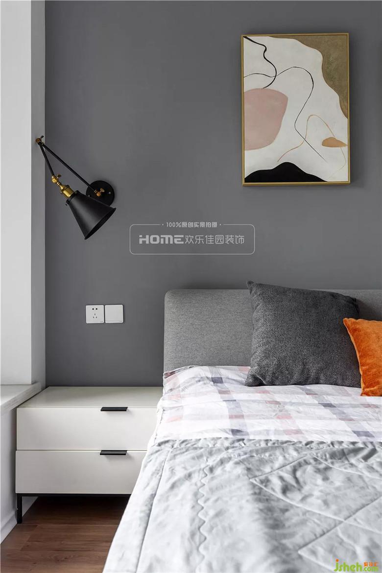 素雅的灰色格調(diào),渲染出主臥寧?kù)o的氛圍,自然光線照射,通透明亮,搭配柔和的掛畫(huà)和窗簾,給業(yè)主帶去優(yōu)質(zhì)的睡眠空間。