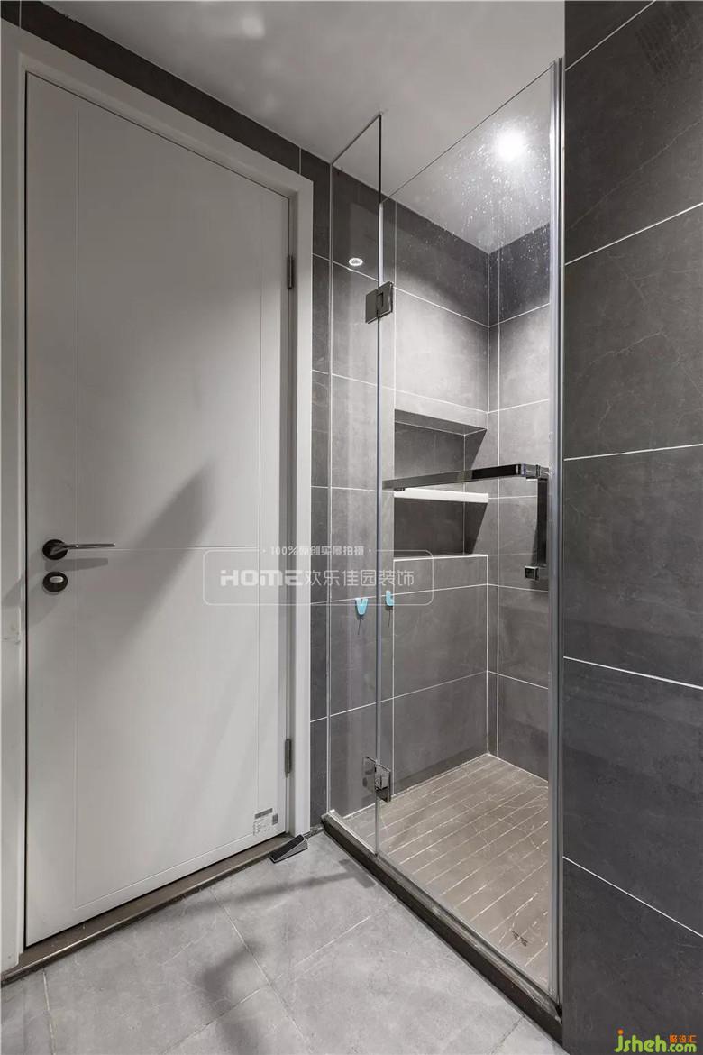 衛(wèi)生間灰磚選用了白色美縫劑,耐臟又好看,朦朧的灰色總給人一種高級感。玻璃淋浴房很好的做到干濕分離,照顧到小朋友的身高鑿出的壁龕和掛鉤,貼心的細節(jié)考慮。