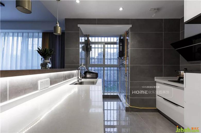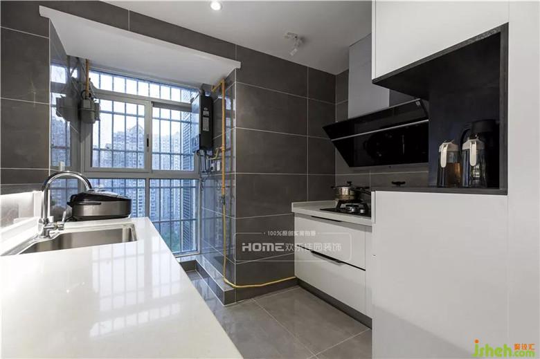 開放式的廚房布局,裝修公司將生活陽臺納入廚房,增大空間利用率。老人在廚房備餐時可以同時照看到小孩子的一舉一動,更加有利于家人之間的互動。
