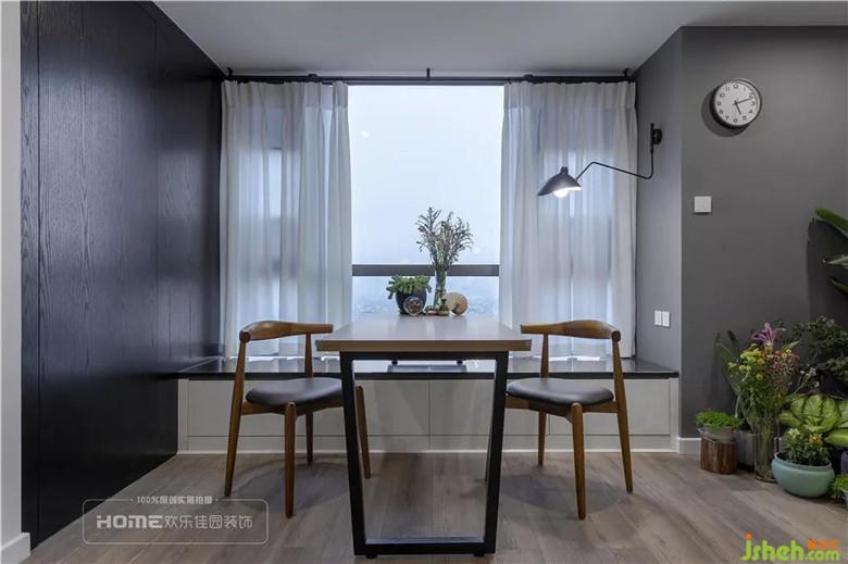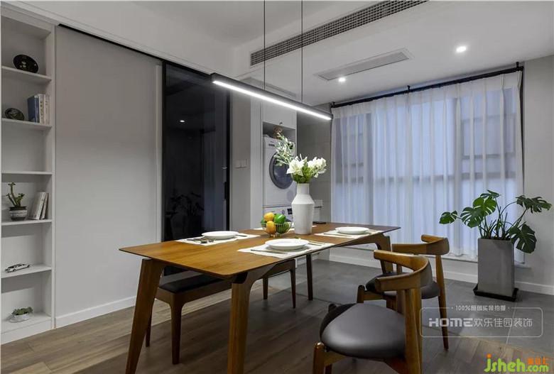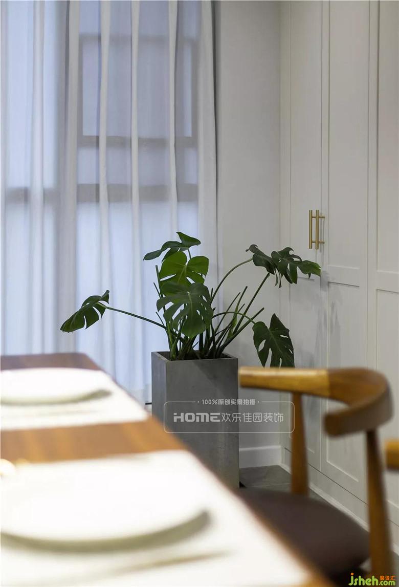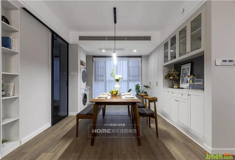 除了滿足業(yè)主的儲(chǔ)物所需,設(shè)計(jì)上還是有所偏重的,主要突出用餐功能,實(shí)木餐桌椅搭配,簡(jiǎn)潔實(shí)用,意在營(yíng)造用餐的舒適和溫馨之感。