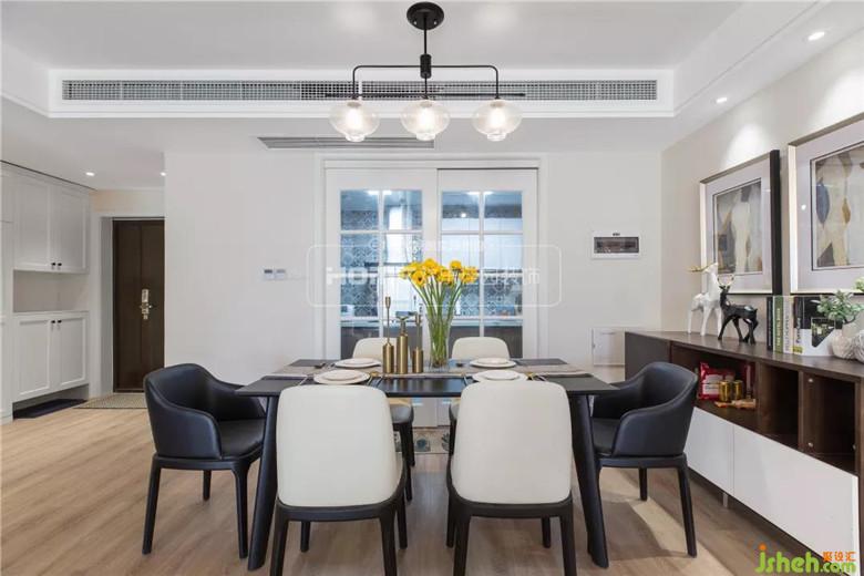 廚房、餐廳、客廳三個(gè)空間相互獨(dú)立,特殊功能劃分,實(shí)則連貫一體,大氣凜然。