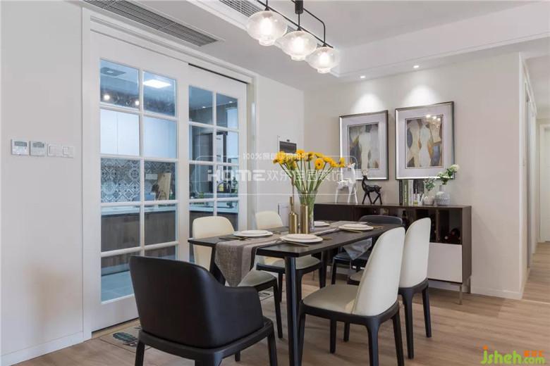 U型櫥柜的設(shè)計(jì),開(kāi)通廚房與餐廳空間,利用推拉玻璃門建立了隔斷,增加廚房的操作空間,在廚房靈活的走動(dòng)也不怕碰到,還增大了就餐與備餐的功能性。