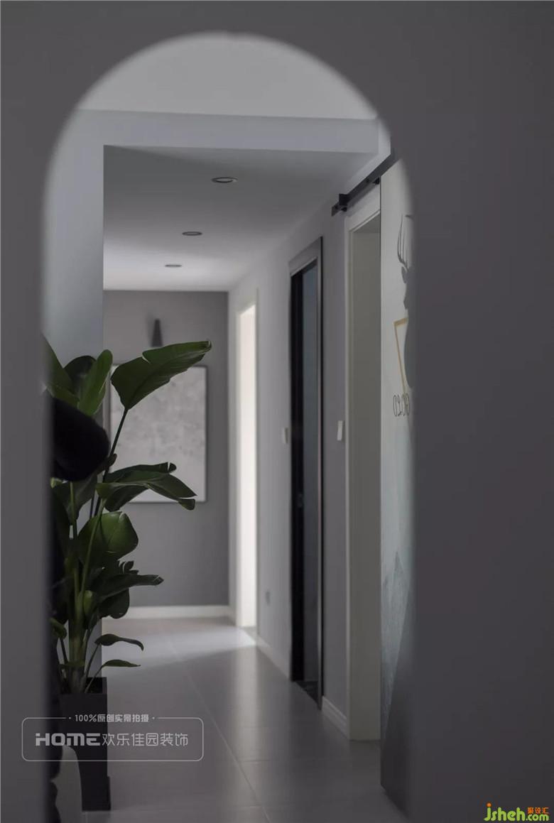 過道是連接臥室的功能空間,三個(gè)臥室分別在過道兩邊,筒燈保證基本照明,門打開將自然光線引進(jìn)來,并且在視線上有了無限延伸的空間錯(cuò)覺。
