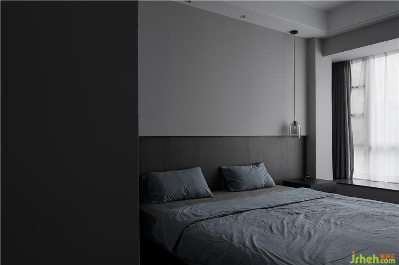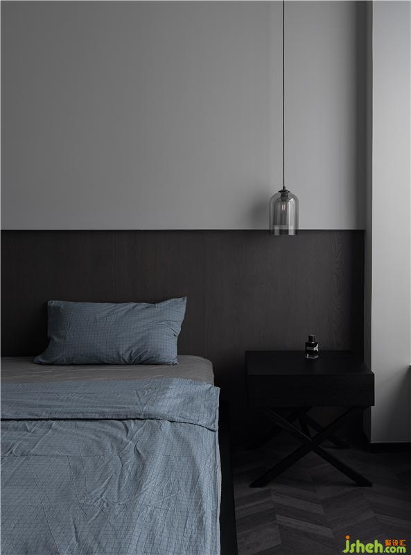 采用無(wú)主燈設(shè)計(jì),讓空間更加整潔,床頭背景下的燈帶讓房間燈光更加有層次。床頭深灰色木質(zhì)墻板內(nèi)退,讓空間更加有材質(zhì)上層次變化。