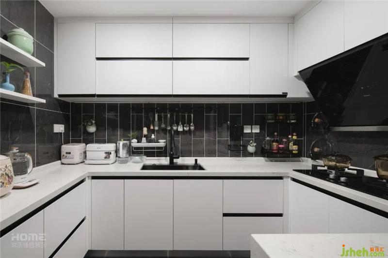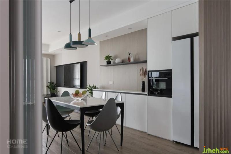 廚房的采光不好,設(shè)計(jì)師將門取消,做成敞開(kāi)式廚房,讓整個(gè)空間開(kāi)闊起來(lái)。
