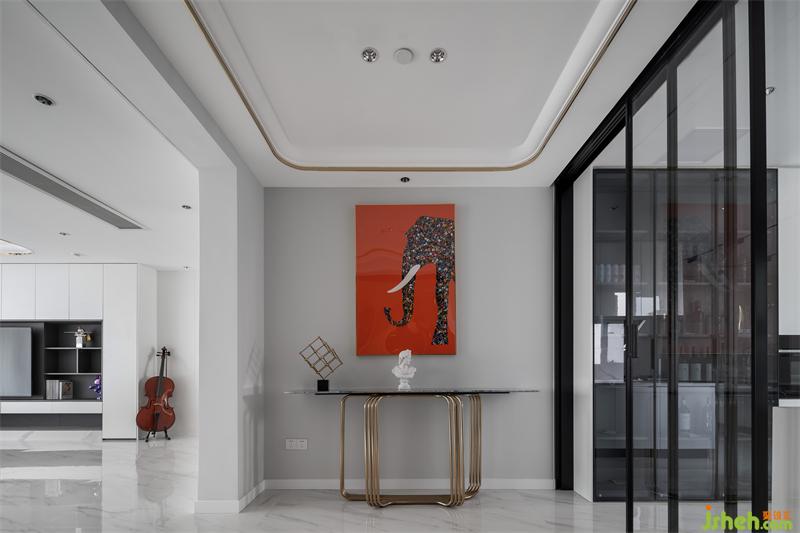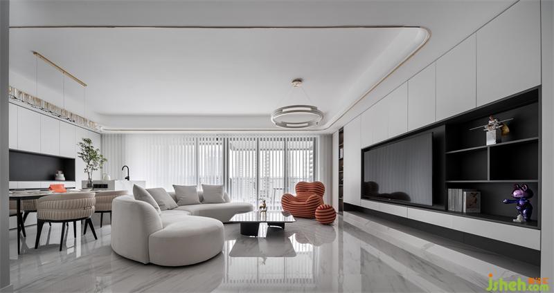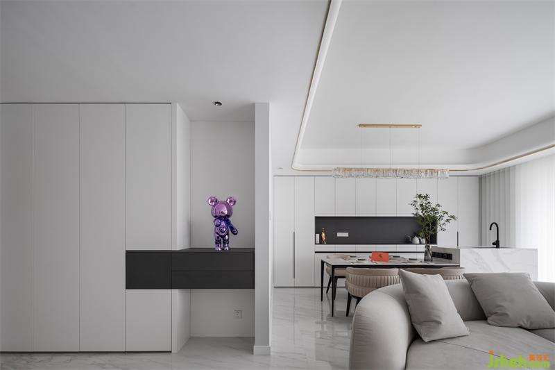 客廳打破傳統(tǒng)布局,將空間化零為整,將書(shū)房、客廳、餐廳延展在一起,以全新的視覺(jué)效果出現(xiàn),開(kāi)放式的格局,當(dāng)自己在工作或者休閑的時(shí)候都能和另一半有情感的對(duì)話交流,而不是在工作之外的閑暇之余各自干各自的。