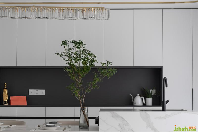 餐廳采用島臺(tái)加餐桌的設(shè)計(jì)方式;在吧臺(tái)做做手工,做做烘培;不僅撫慰自己的胃,也更撫慰焦慮的心。