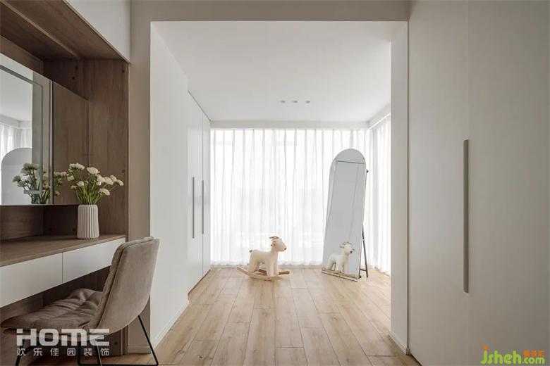 家裝設(shè)計(jì)將原本次臥室打通增加衣帽間,同時(shí)讓空氣對(duì)流增強(qiáng),也使得空間的使用范圍增強(qiáng)!家裝設(shè)計(jì)從家具到藝術(shù)擺件貫穿其中,占據(jù)了客人的視覺細(xì)胞,邊角閃現(xiàn)精致。實(shí)木家具與白色空間,引領(lǐng)了一種新型的生活方式。