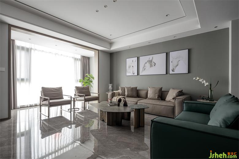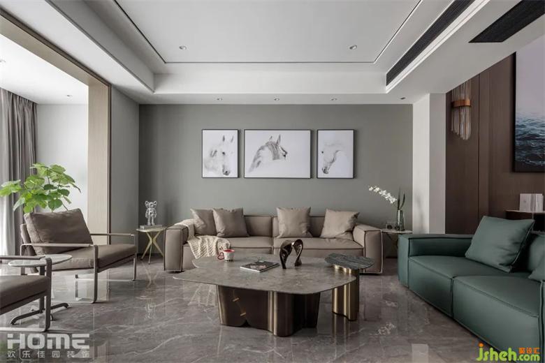 Living Room with no main lamp design, avoid using chandelier will make space feeling depressed, the use of art paint wall, enhance the sense of advanced space.